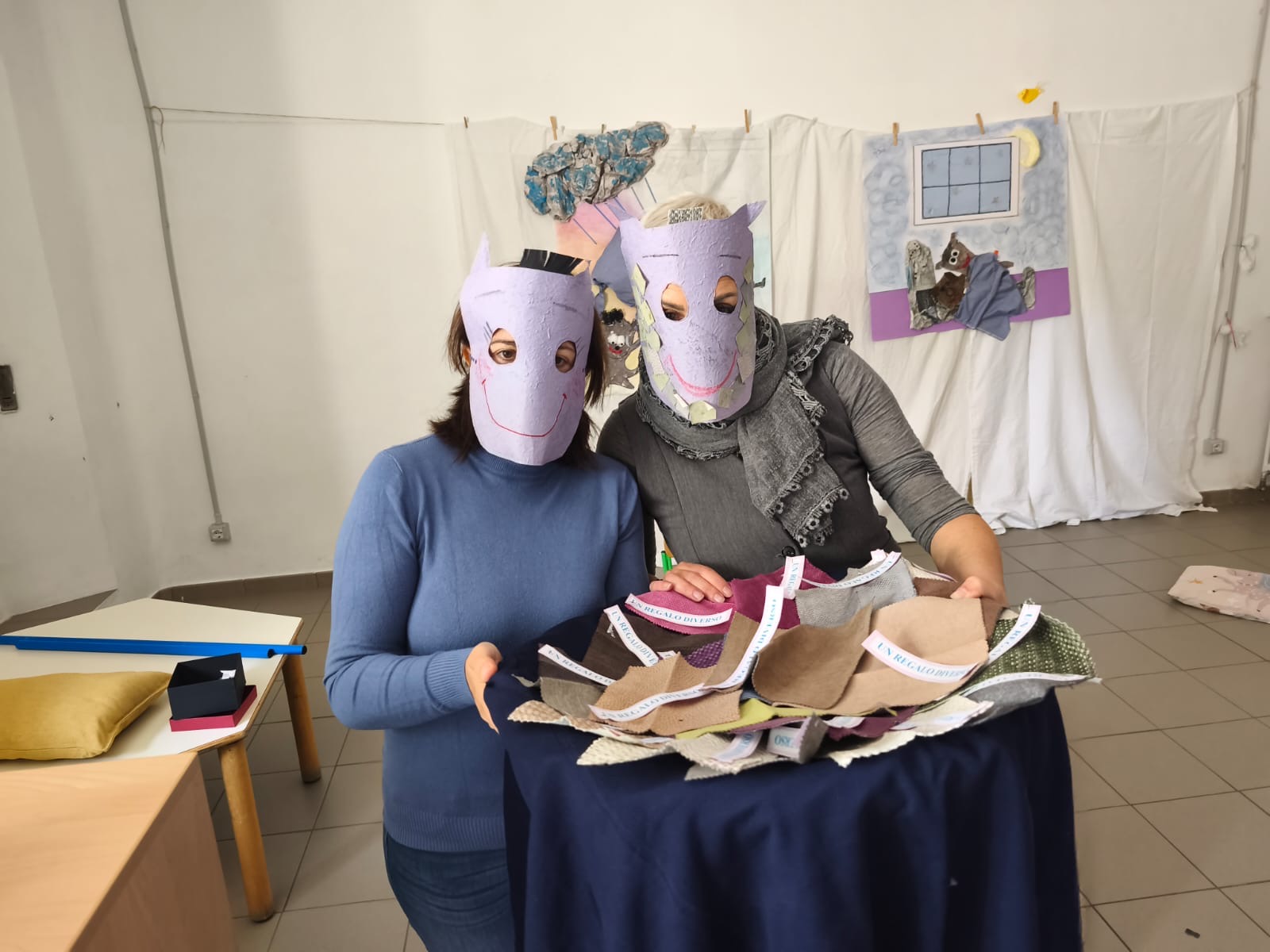 A conclusione del racconto, a tutti i piccoli è stato fatto un regalo simbolico: un piccolo pezzettino di stoffa! Questo semplice oggetto non è un dono qualsiasi, ma un invito a usare l’immaginazione. Proprio come nella storia, questo pezzettino di stoffa è un punto di partenza per creare, fantasticare e costruire qualcosa di personale e unico. Sarà un ricordo tangibile di questa giornata e uno stimolo per la fantasia che li accompagnerà durante l’anno scolastico.